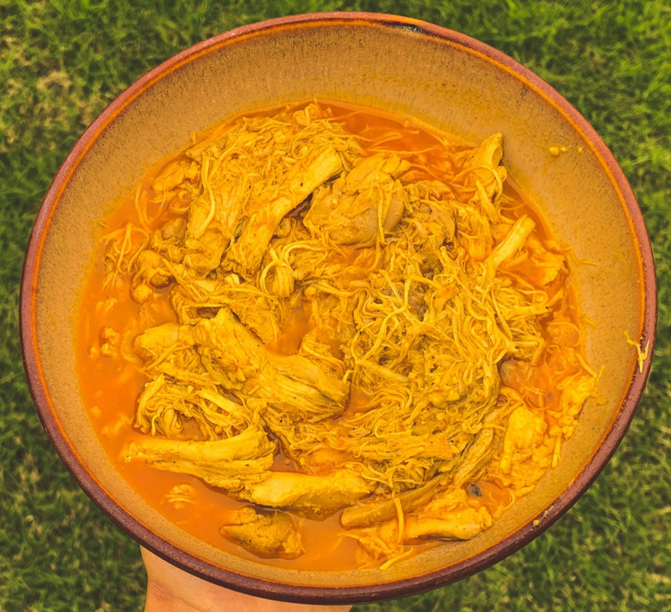 When you are ready for serving it is best served over a bed of cauliflower rice but can be eaten alone as well, use tongs to put some chicken into a bowl and ladle the sauce over it.